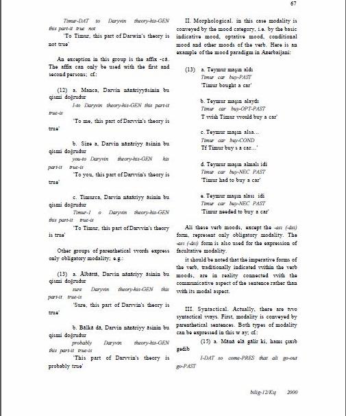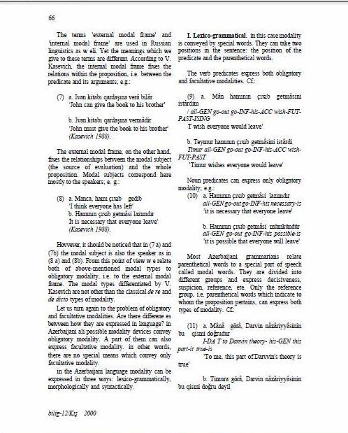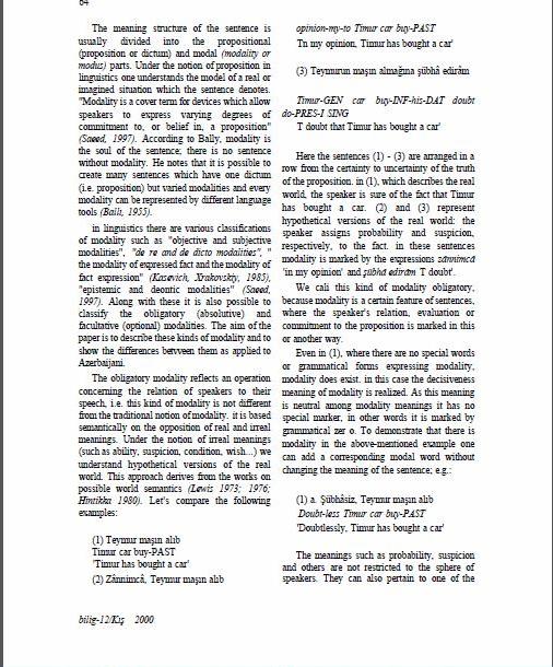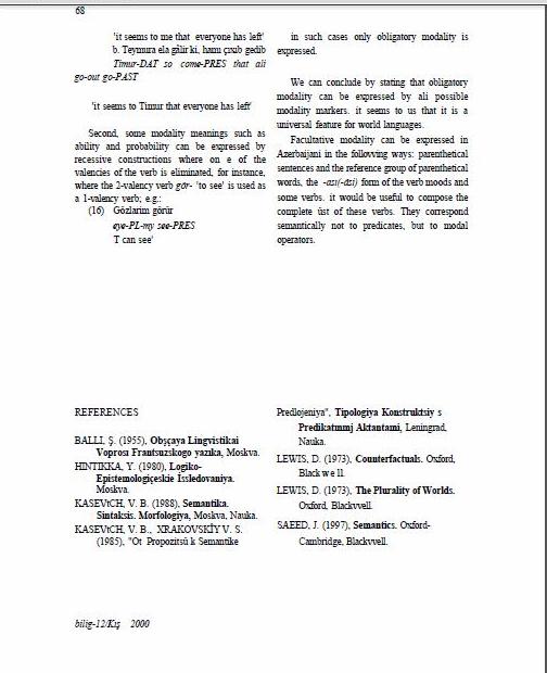 Sultanzade, V. (2000), “Two Types of Modality and Their Expression in Azerbaijani”. Bilig. 12: 63-70.
